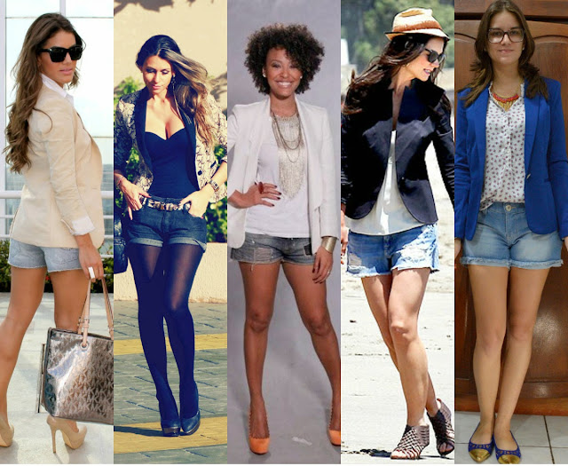 Para não errar na produção, só é preciso escolher o blazer certo e não deixar que o seu comprimento ultrapasse o comprimento do shorts.