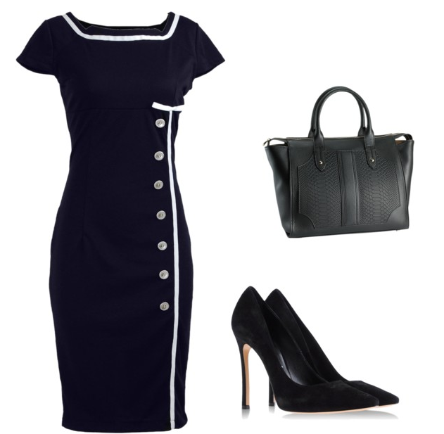 Look para a noite,camisa sem mangas com detalhe transparante no colo,assim não fica vulgar,coloque uma saia lápis na cor azul marinho , use um casaco na cor azul marinho com brilhos discreto,use um scarpin meia pata na cor preta,acessórios na cor preta e um bolsa com três cores(fundo branco com alguns detalhes em vermelho e preto.) para quebrar o look sério.