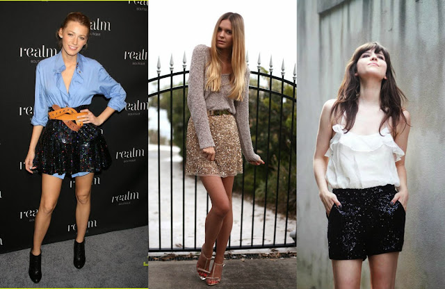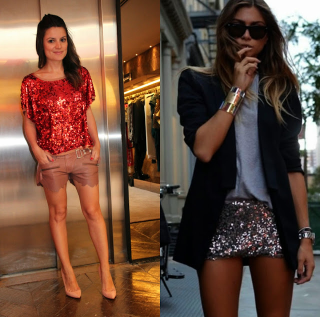 Shortinho de paetês fica ótimo com uma camisa básica, ou uma blusinha ousadas