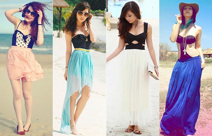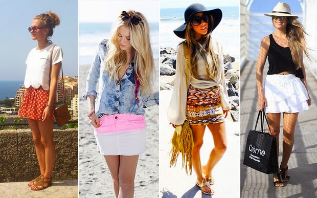 As saias aprecem de diversos modelos, tamanhos , cores e até estampas, faça combinações, com body, cropped ou biquínis.Deixando um ar sofisticado, a dica é se a saia for fluida, dar um ar descontraído e praiano.