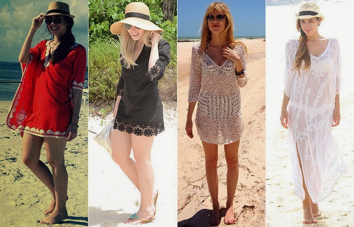 Se você prefere kaftan, ou batas abuse, pois elas nunca sai, de moda principalmente, as de renda, bordado ou choche.Para um ar mais usado use transparências, ficaram lindos, basta combinar com o biquíni/maio.