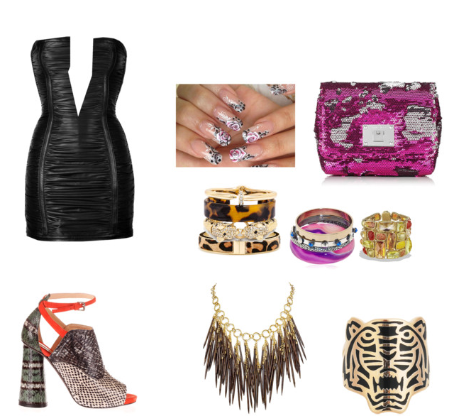 16.Aqui é abusar e ousar,tudo justo e curto,o foco é valorizar o corpo,mostrar as curtas,tudo colorido e brilhante.Veja vestido com decote e justo,unhas e acessórios chamativos,e sandálias com mix cor e textura.