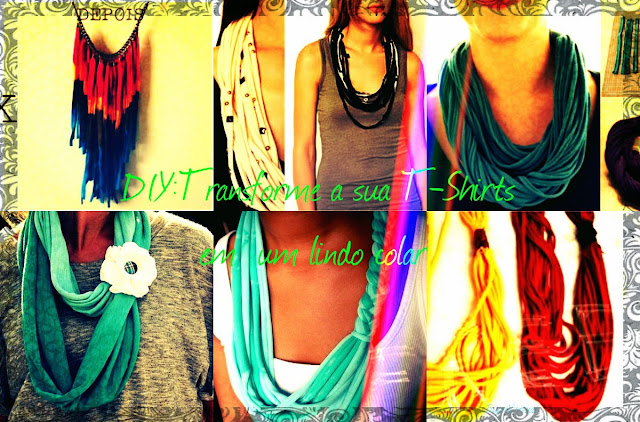 Sabe aquela T-Shirts de malha, que você, não quer mais que tal, transformar ela em um lindo colar, então veja como é fácil fazer isso as inspirações, e depois o passo a passo: